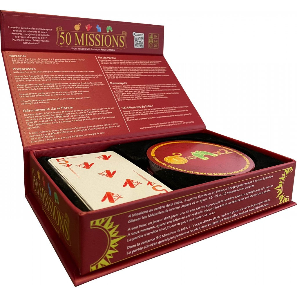 Ensemble, vous avez 50 missions à réaliser. Pour cela, à votre tour, posez une de vos cartes sur une carte ayant un point commun : la valeur ou le symbole. Vous pouvez vous parler mais sans révéler la valeur ou le symbole de vos cartes. C’est en apprenant à