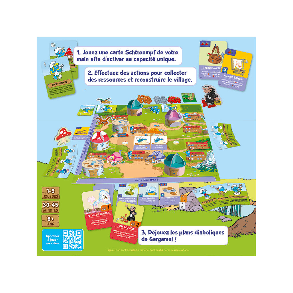 Vous êtes des Schtroumpfs et vous êtes chargés de reconstruire le village Champignon, presque rasé après les machinations du diabolique sorcier Gargamel.
