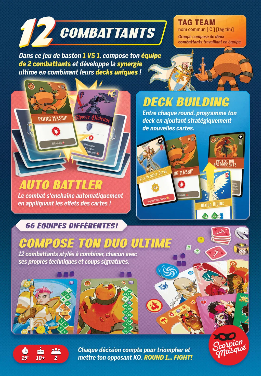 Un nouveau jeu de baston à 2 entre dans l'arène ! Inspiré des meilleurs jeux de combat d’arcade, Tag Team est un auto battler croisé avec du deckbuilding. Composez votre équipe de 2 combattants et développez la synergie ultime ! Chaque personnage a ses propres techniques et coups spéciaux. FIGHT !